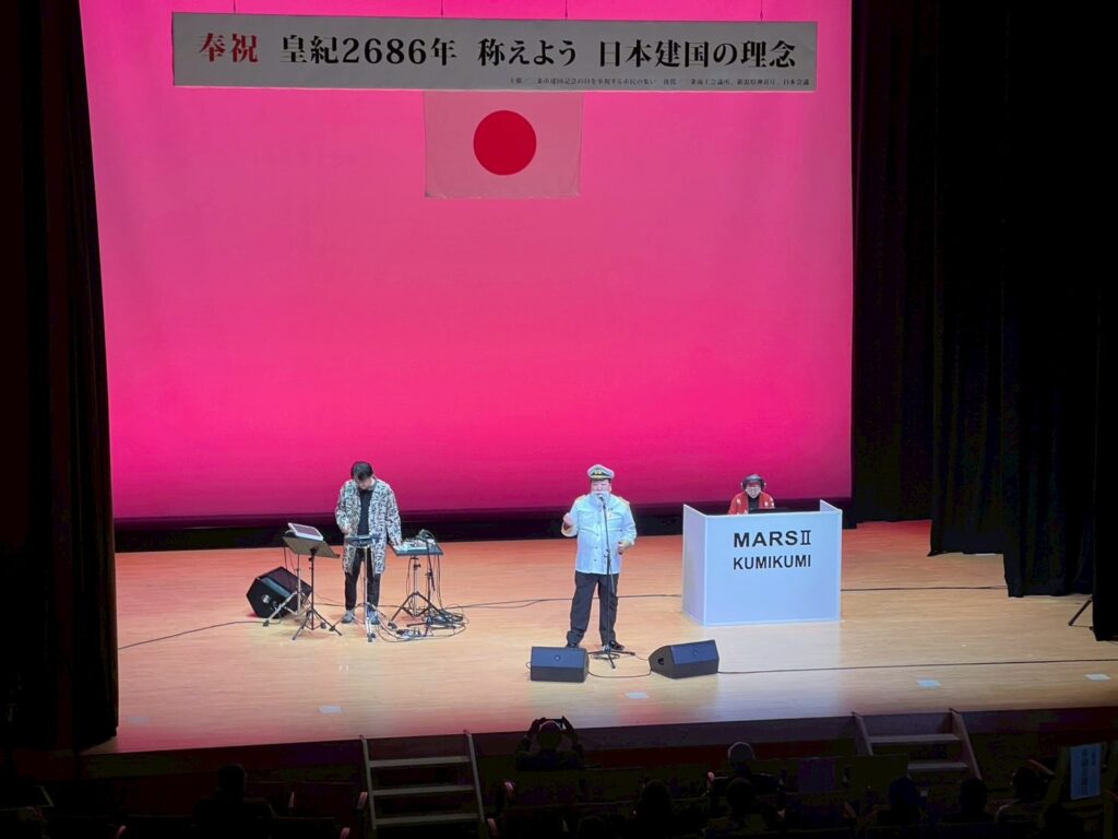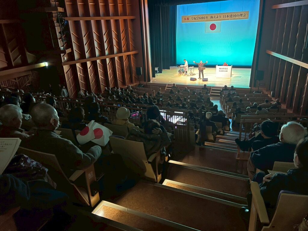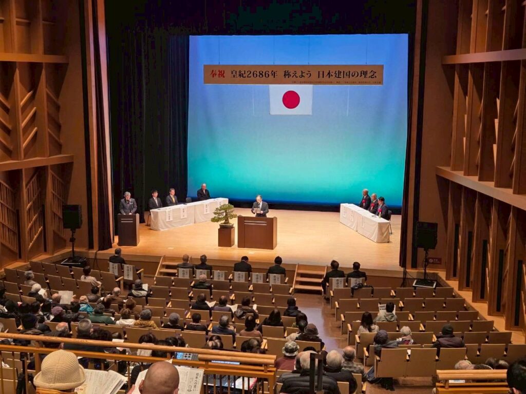 「建国記念の日」の11日、新潟県三条市で第39回となる「三条市建国記念の日を奉祝する市民の集い」が開かれ、約450人が参加して日本建国の理念の実現を誓った。